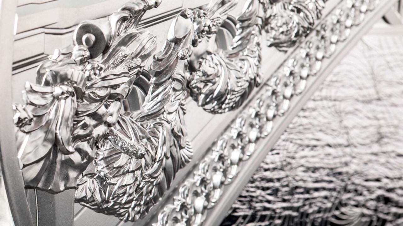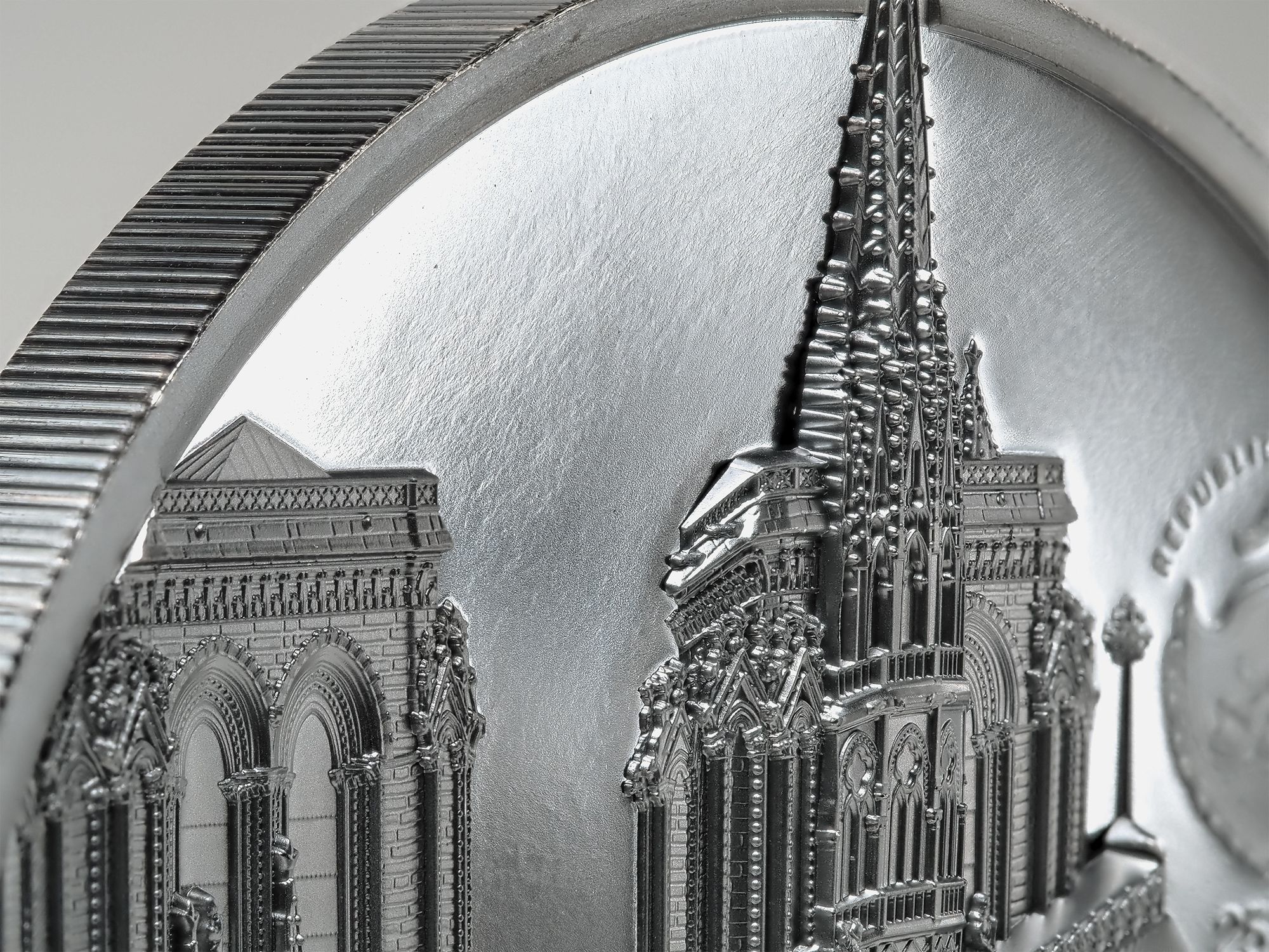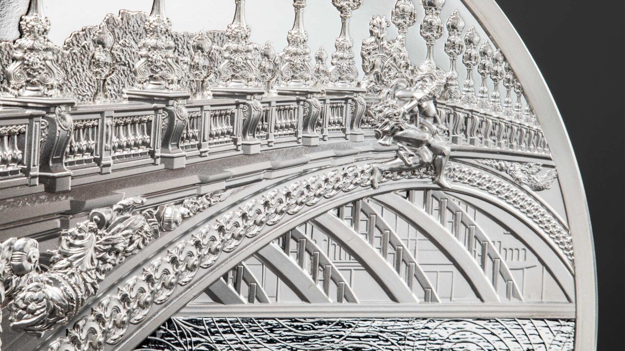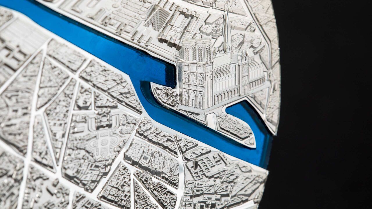The Tiffany Art series just keeps getting better! Now they’ve outdone themselves with the latest release, Metropolis – Paris. Lose yourself in the bird’s eye view of the “City of Love” ornately engraved on the reverse. World-famous landmarks come alive, including the Tiffany-series signature glass inlay of the River Seine. The way the glass appears to divide the coin in half is a ground-breaking achievement of numismatic technology!