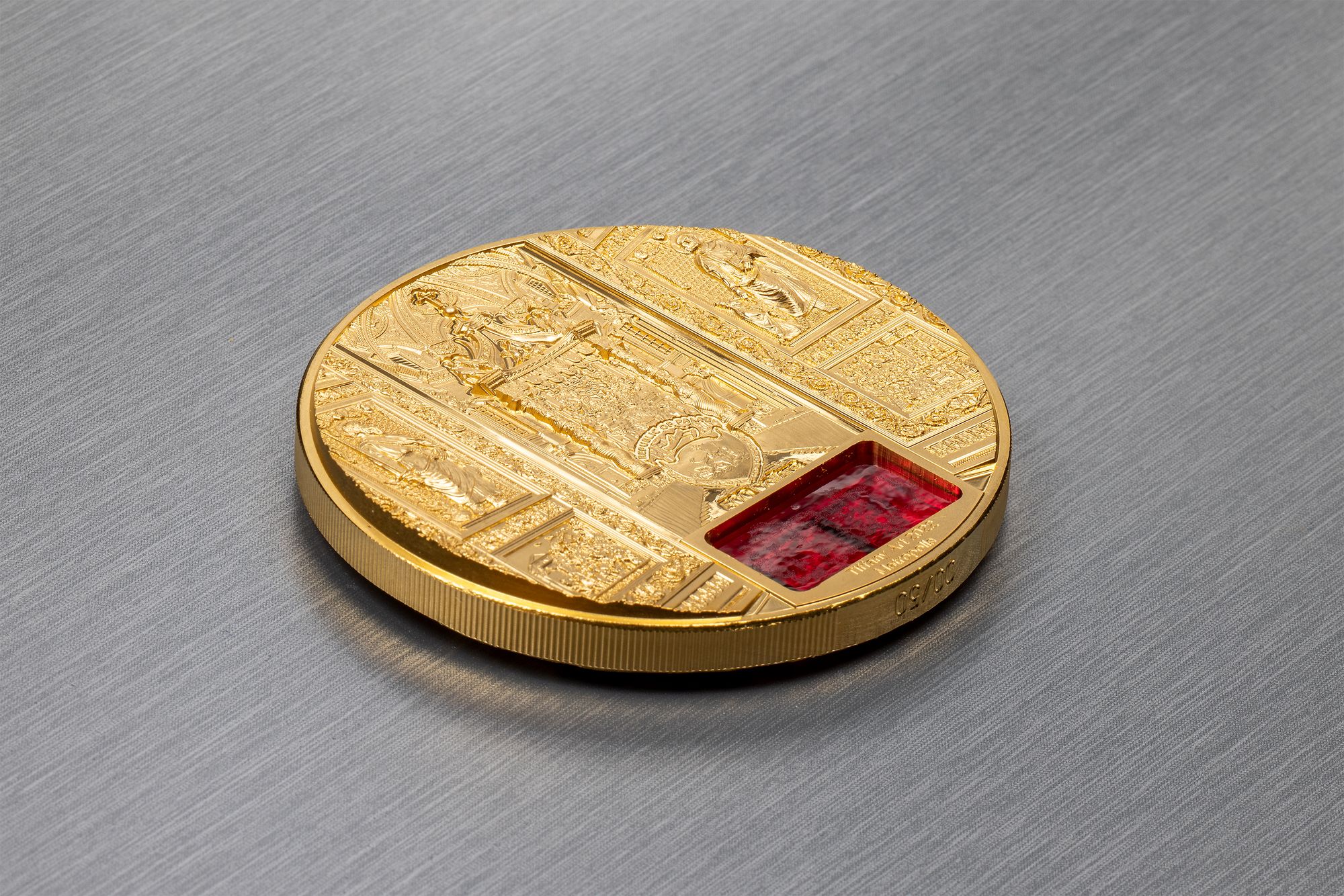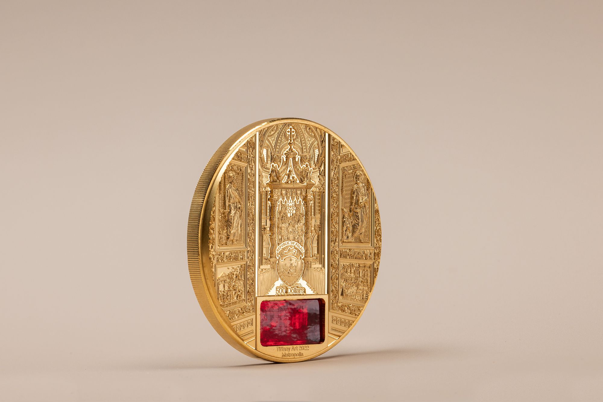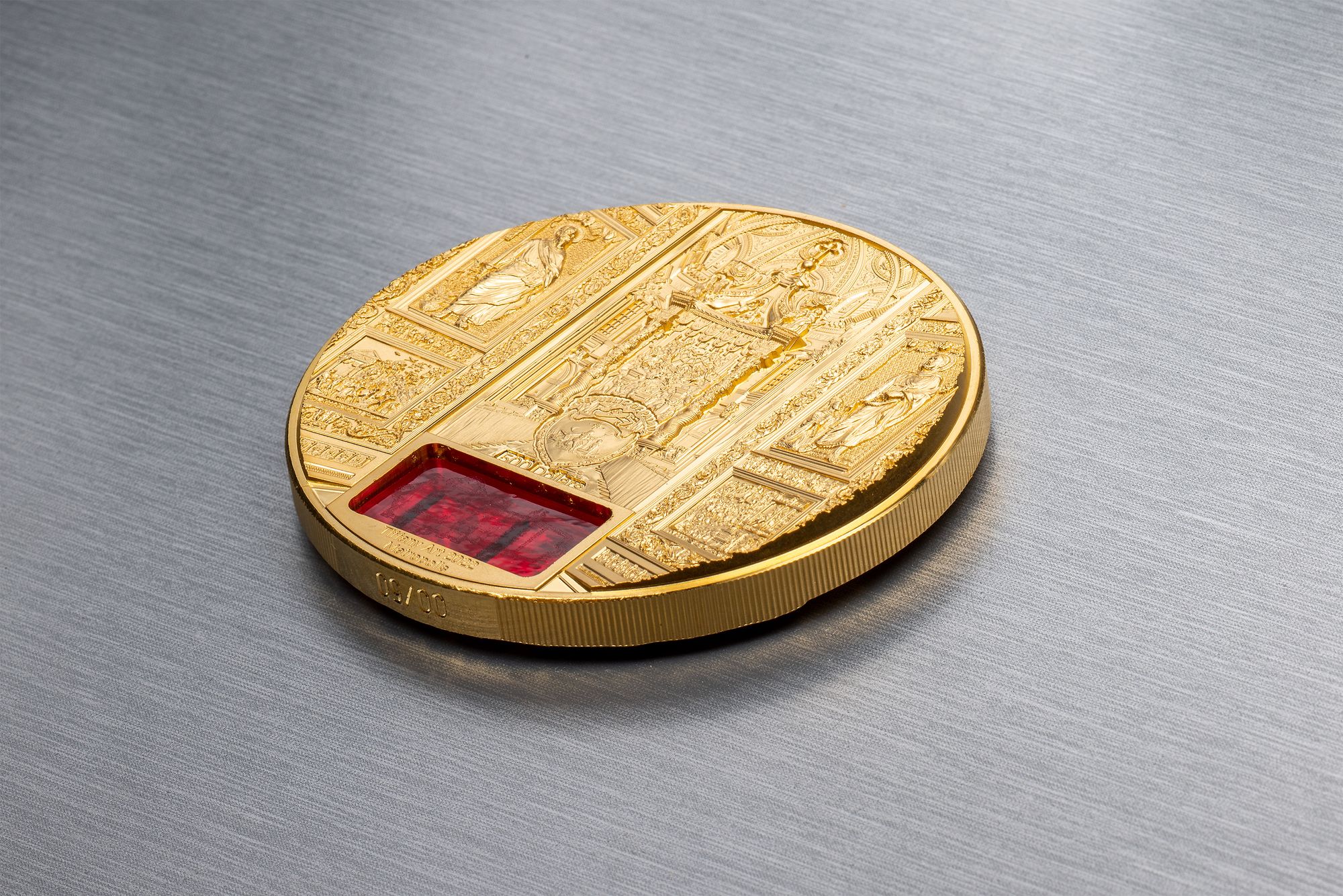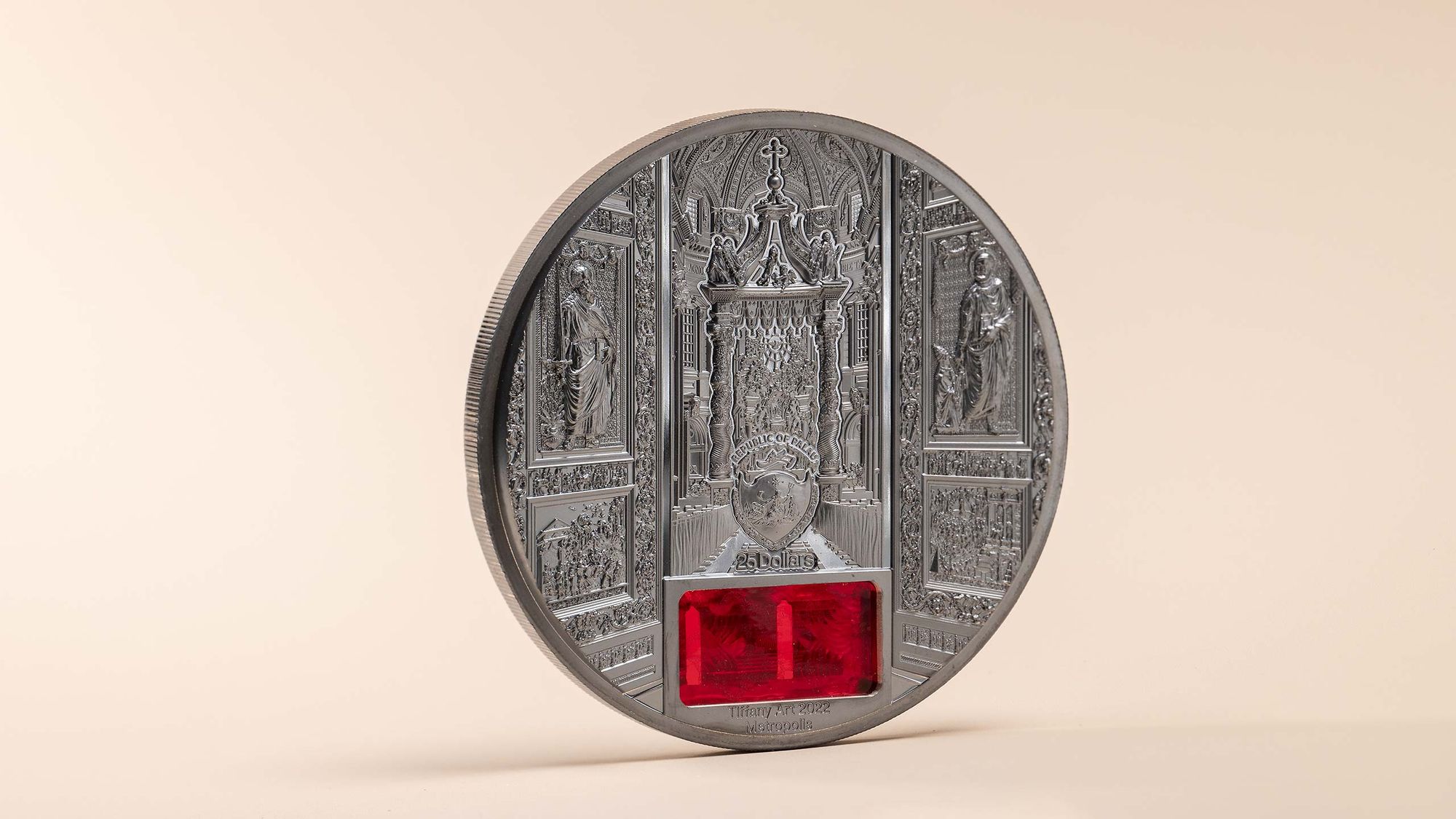 This 5 ounce golden masterpiece is a part of the “Tiffany Art Metropolis” series dedicated to recognizing famous cities and their landmarks. This edition features a look at the Notre Dame bell tower, the Paris cathedral turned landmark that has inspired stories of hunchbacks and gypsies. Don’t miss the Tiffany stained glass windows featured on your coin…they’re authentic!