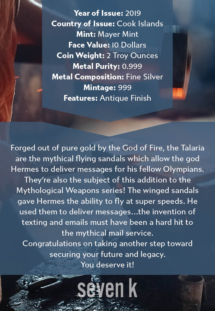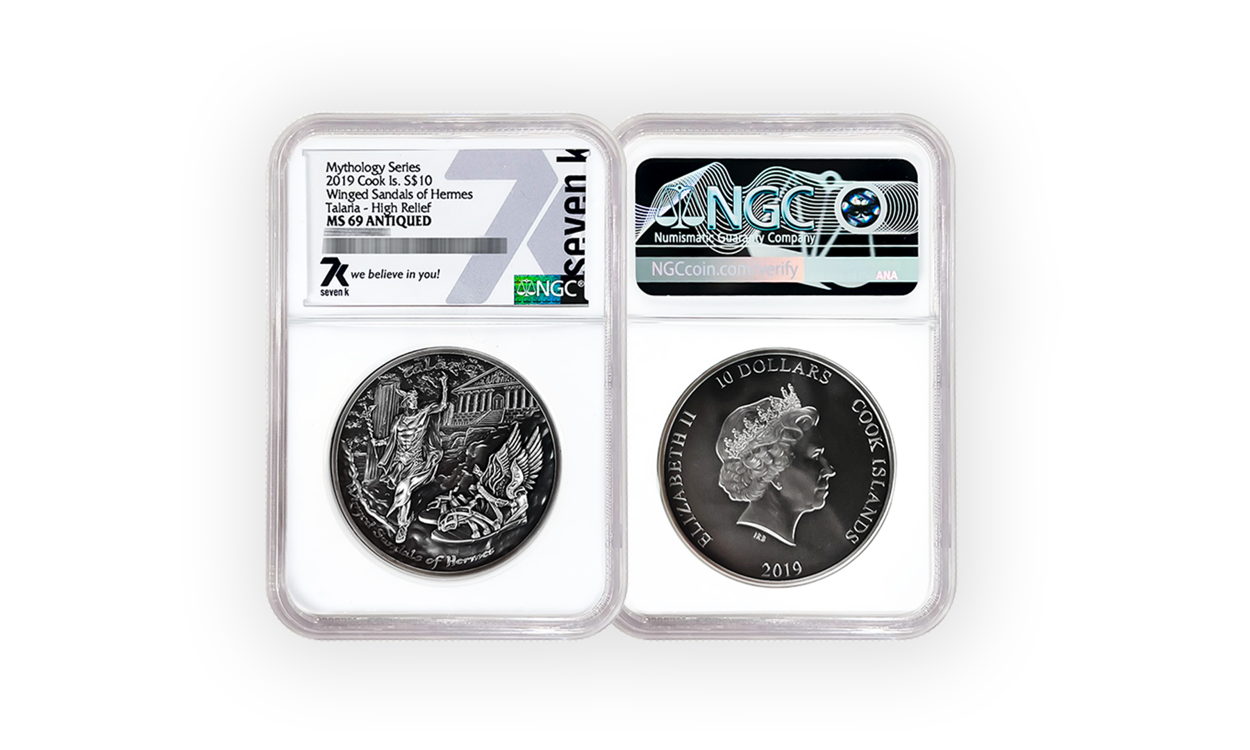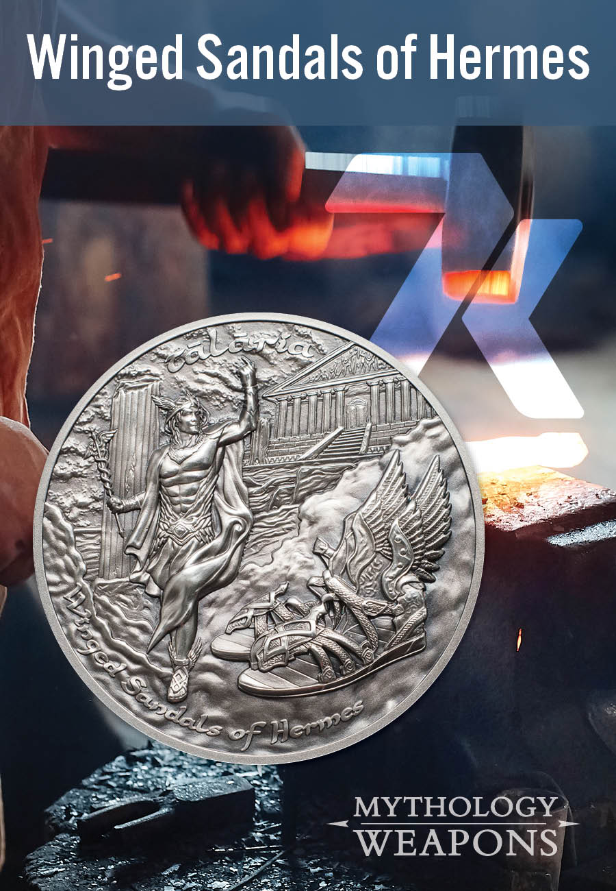 2019 Mythology Weapons Winged Sandals of Hermes 2 oz Silver Coin MS69 & MS70