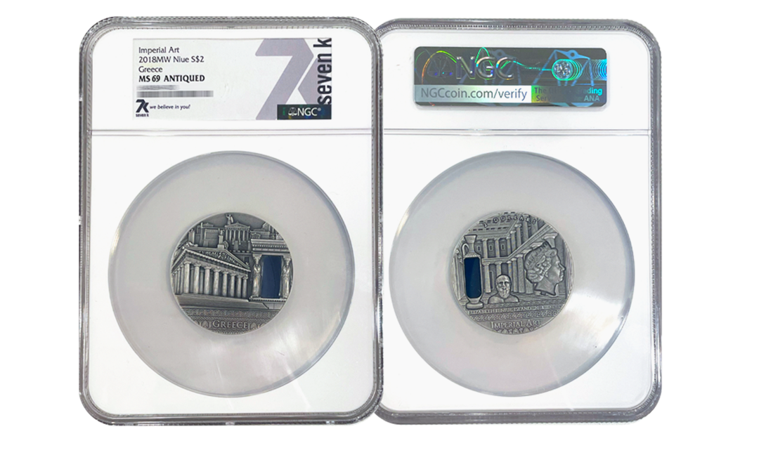 2018 Imperial Art Greece 2 oz Antiqued Silver Coin MS70 & MS69