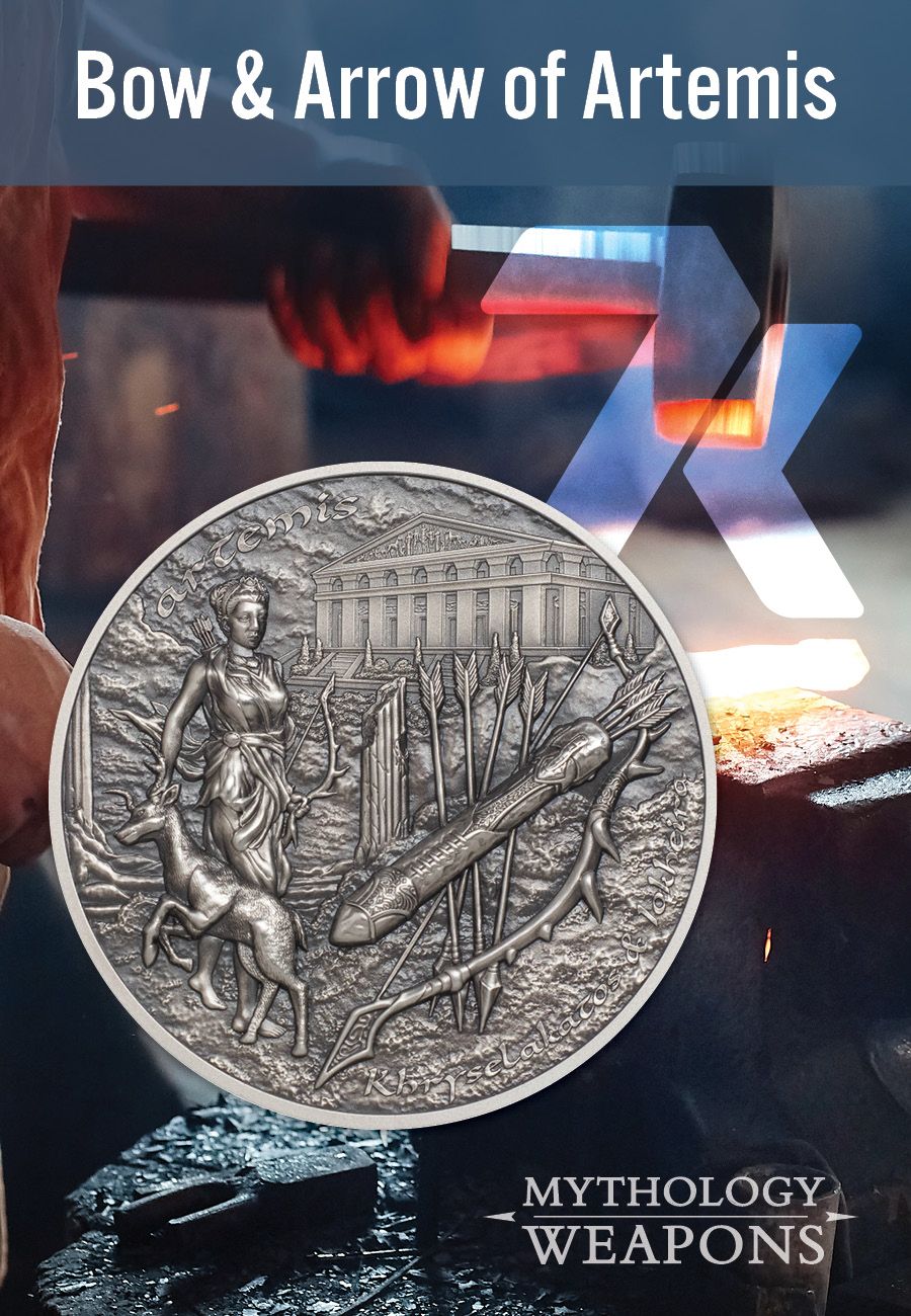 2020 Mythological Weapons Artemis Bow & Arrow 2oz Silver Coin MS70