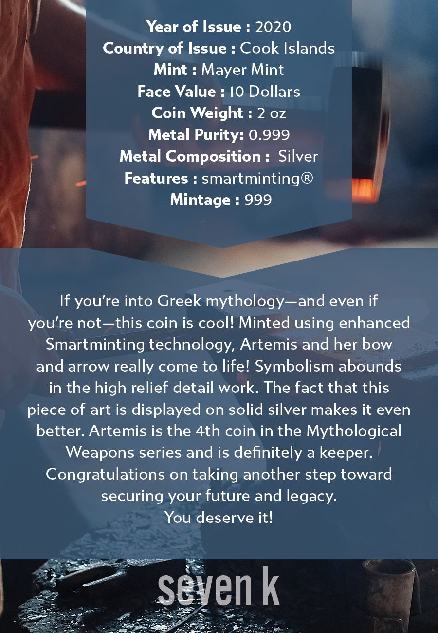 If you’re into Greek mythology—and even if you’re not—this coin is cool! Minted using enhanced Smartminting technology, Artemis and her bow and arrow really come to life! Symbolism abounds in the high relief detail work. The fact that this piece of art is displayed on solid silver makes it even better. Artemis is the 4th coin in the Mythological Weapons series and is definitely a keeper.