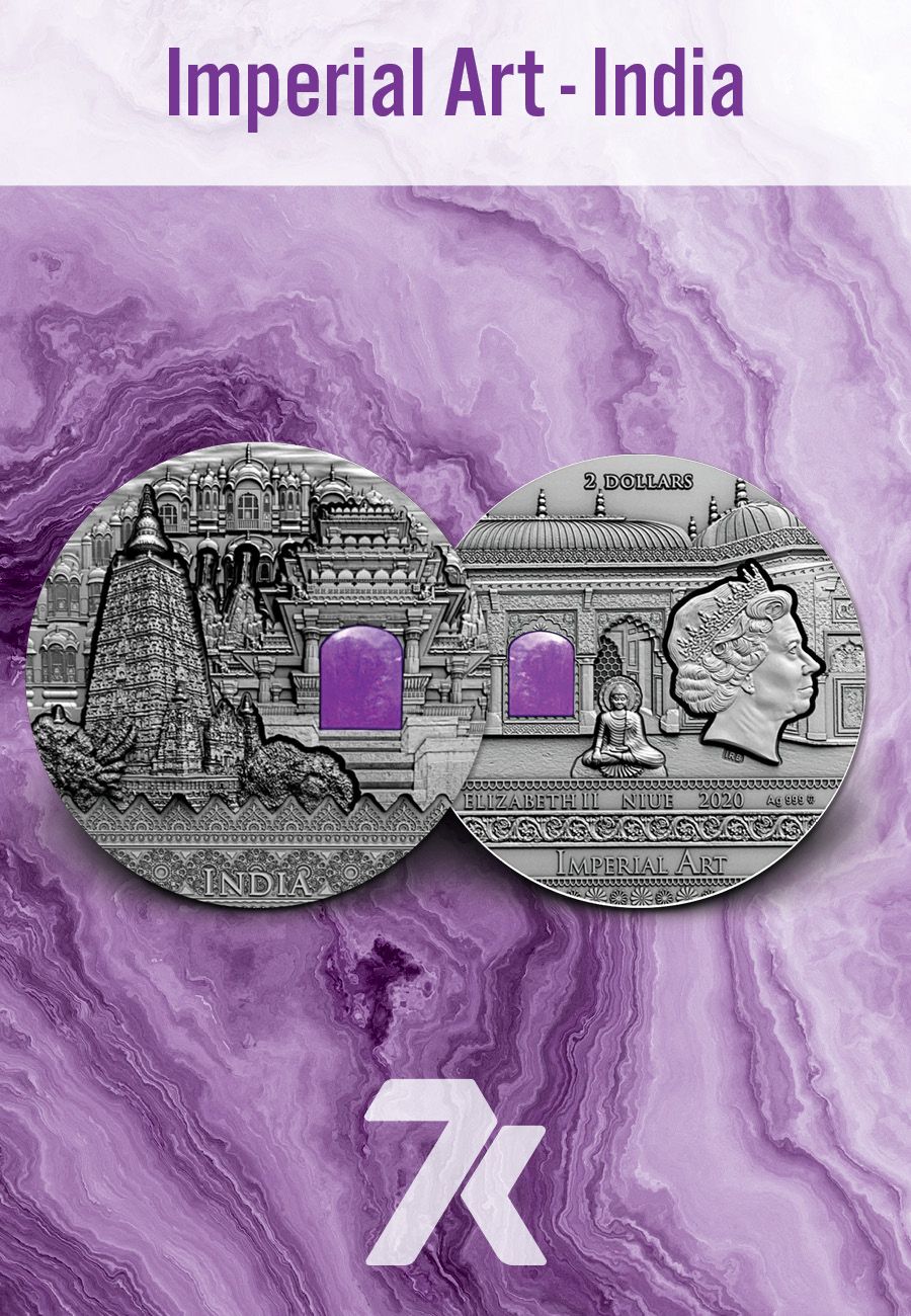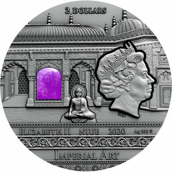 This breathtaking coin is part of the Imperial Arts series and honors the civilization of the Indus Valley—the oldest civilization in Asia and a goldmine of diverse architectural marvels. The architecture of today’s India showcases the nation’s rich cultural heritage. On this coin you will find the Mahabodhi Temple, the Wind Palace of Jaipur, the Temple of Ranakpur Jain, Fort Amber, and a reproduction of the Buddha Monument.