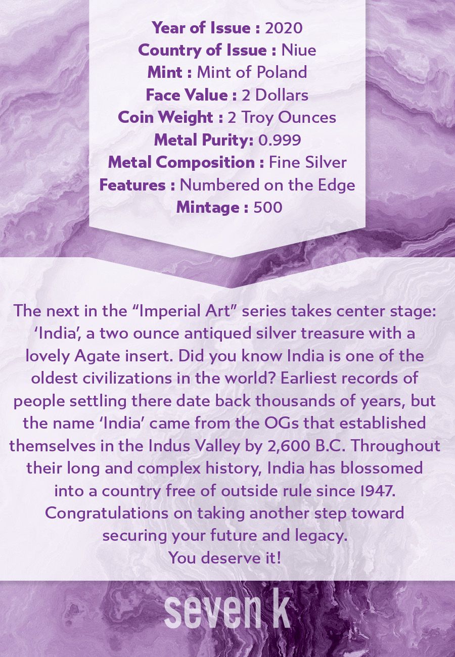 2020 Imperial Art India 2 oz Antiqued Silver Coin MS70 & MS69