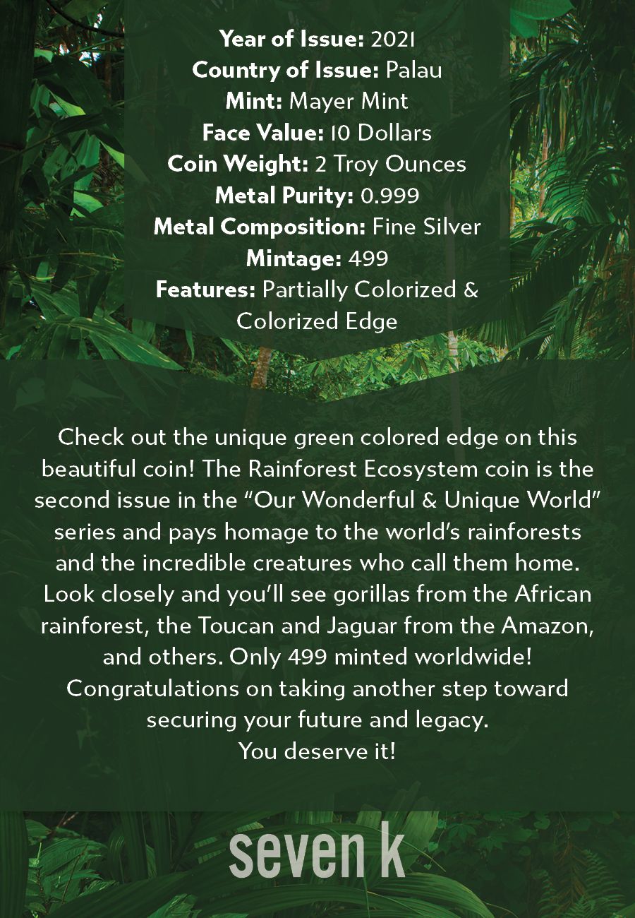 2021 Our Wonderful & Unique World Rainforest Ecosystem 2 oz Silver Coin PF70 & PF69