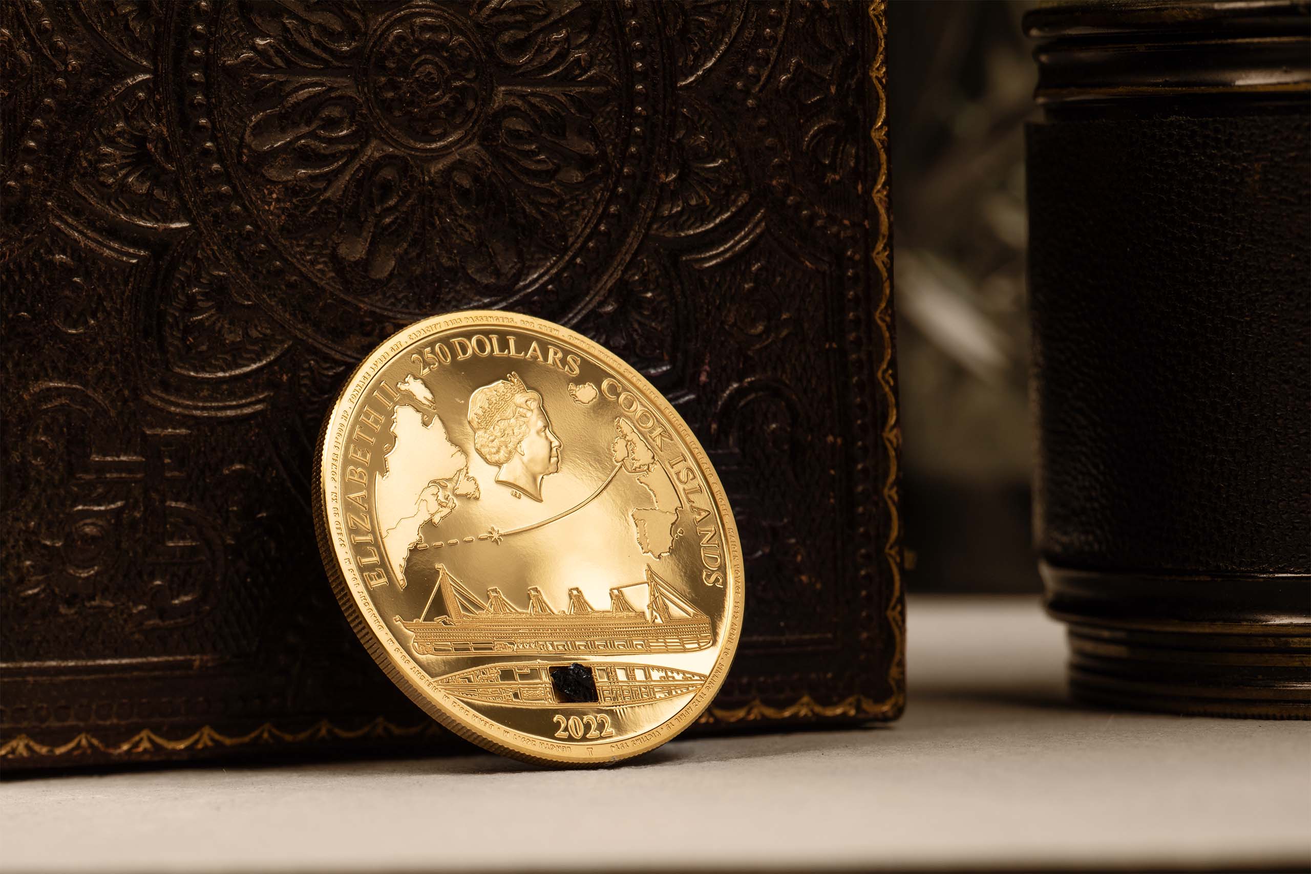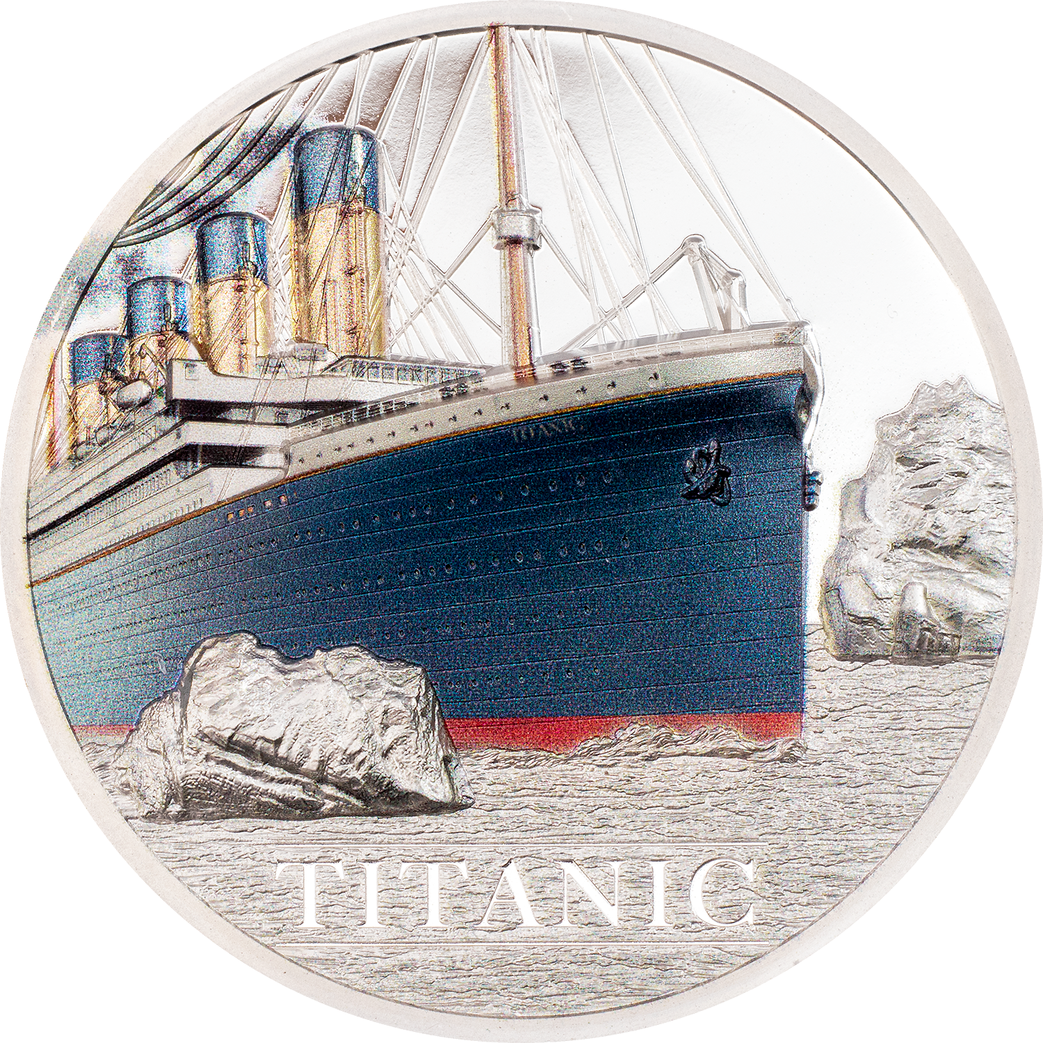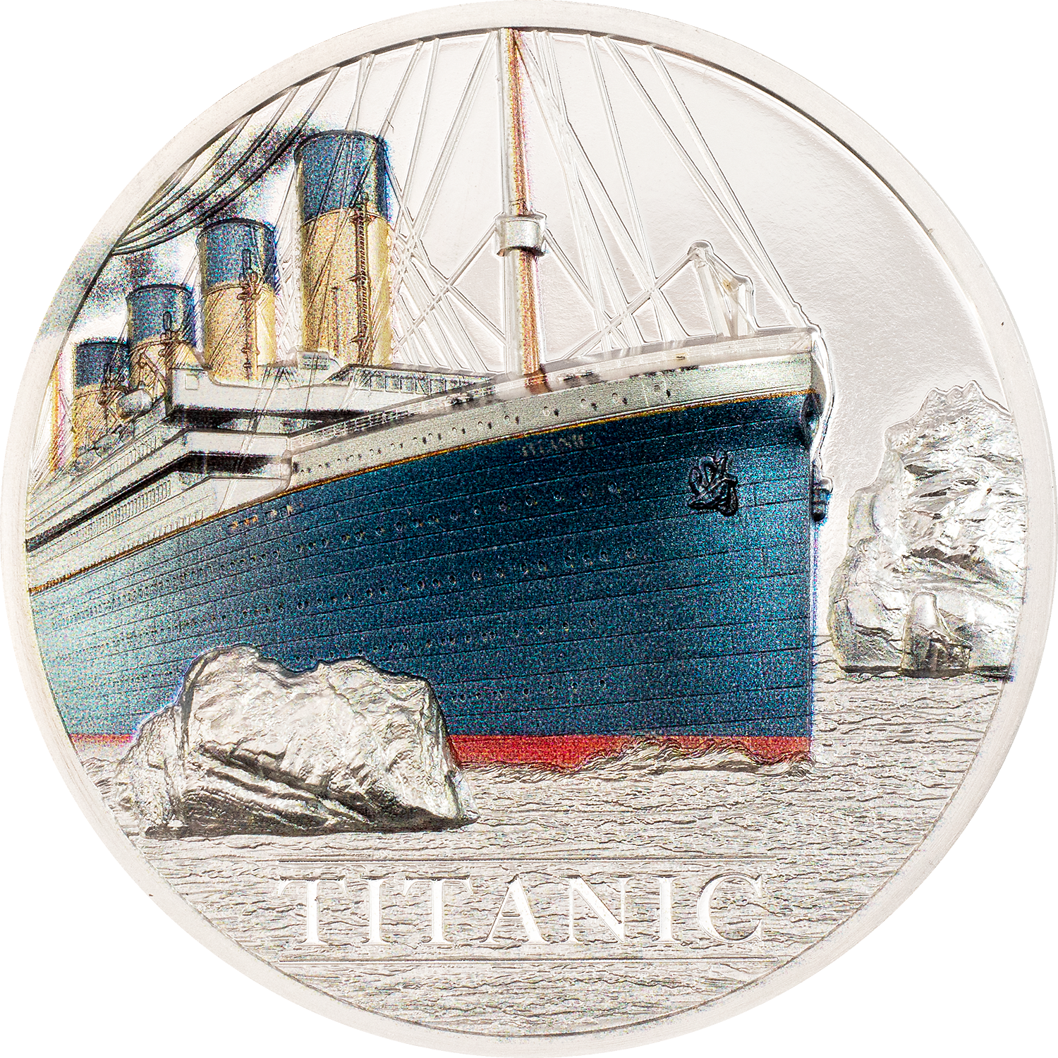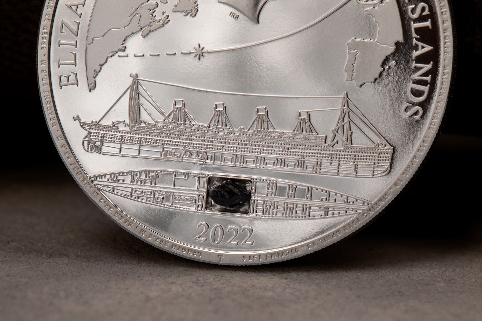 Just a handful of artifacts from the Titanic have made it back to the water surface as the ship lies at a depth of 3800 m (12470 ft.) at the bottom of the sea. One of them is an authentic coal lump which was recovered back in 2000. This would have been used to power its massive steam engines. A certified piece of it is integrated into these coins! There will be a total of 5 different coins done in 3 metals. With this coin honoring the Titanic you get yourself a special relic of this historic event.