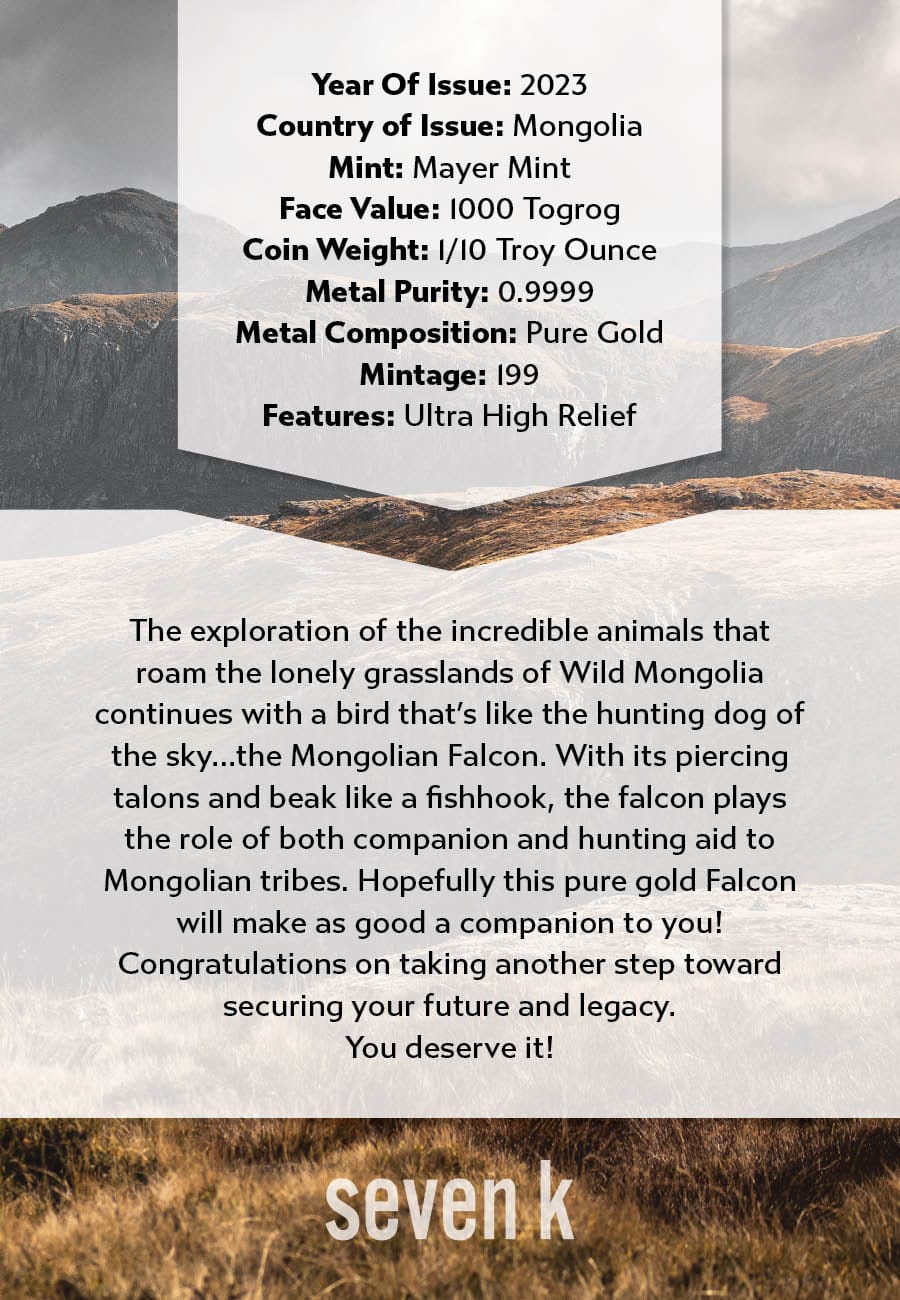 2023 Wild Mongolia – Mongolian Falcon 1/10-oz gold PF70